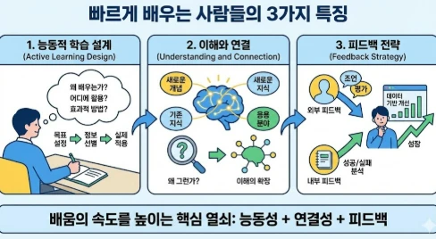 많은 사람들이 무언가를 빨리 익히기 위해 반복 학습에 의존합니다. 물론 반복은 중요합니다. 하지만 빠르게 배우는 사람들은 무작정 반복하기보다 ‘이해’하고, 그것을 기존 지식과 연결하는 능력이 탁월합니다.